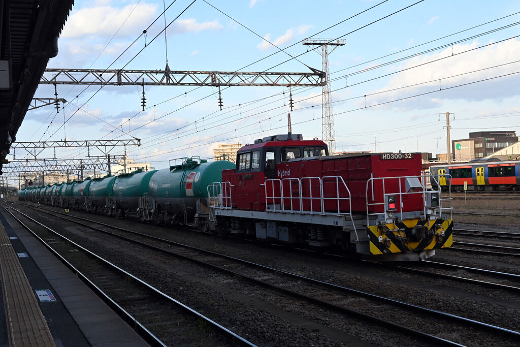 おまけですが、構内でタンク列車を入れ替えていたHD300形。