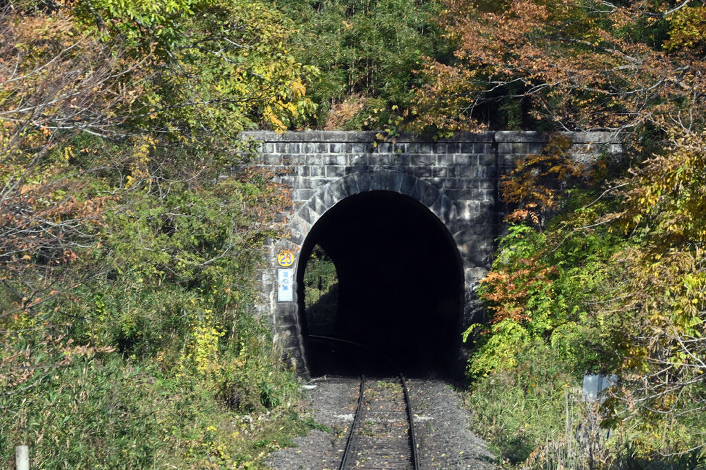 磐越東線にはトンネルが多いのですが、どれも石組みで年代物ばかりです。トンネルの周りも色づいていました。