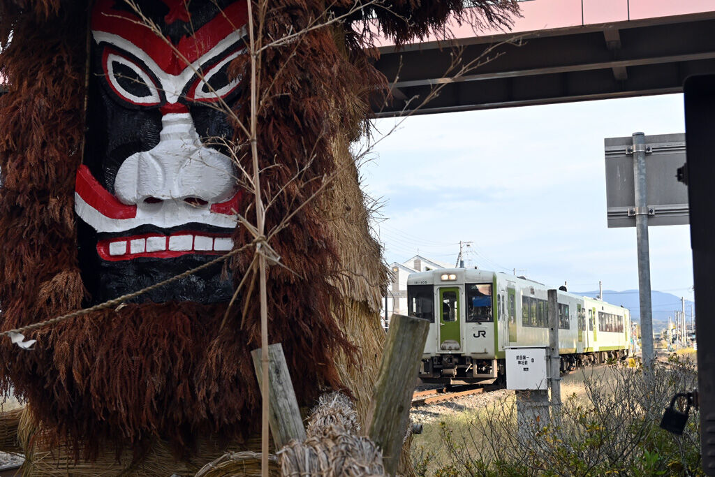下り列車もお人形様に迎えられます。1番線に入線すると思いましたが、上り列車と同じ2番線に到着しました。他の駅ではスプリングポイントがあって、上りと下りは別の番線に入ったのですが、不思議です。