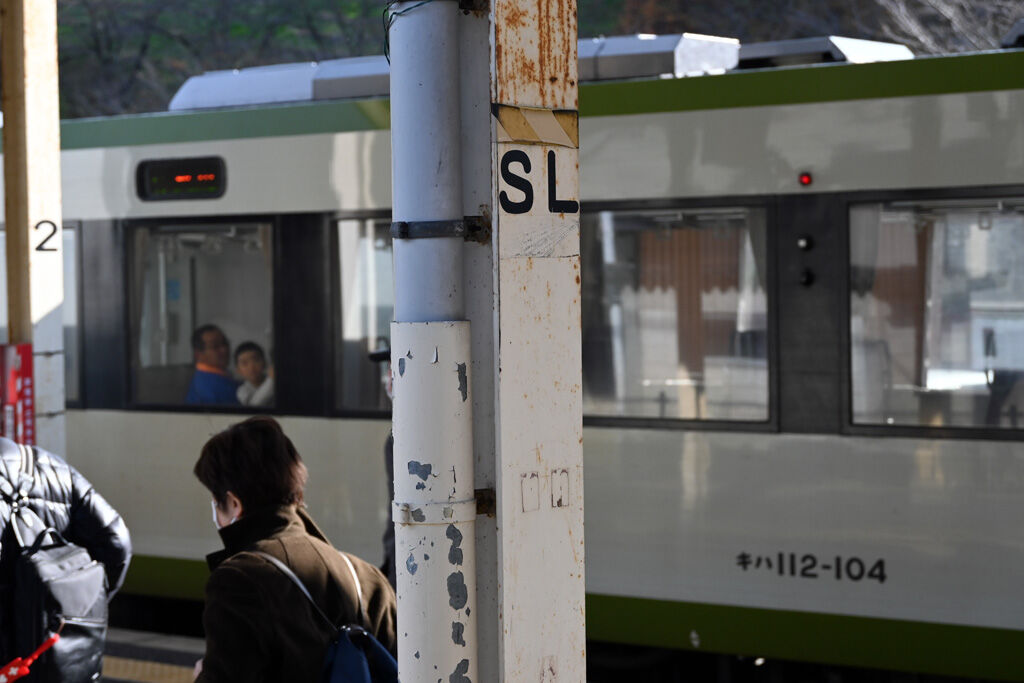 駅の柱にそれほど古くない「SL」の表示が。東線が無煙化されたのは57年前ですから、その当時の物ではないでしょう。2004年に走ったSLあぶくま号の時のものかもしれません。